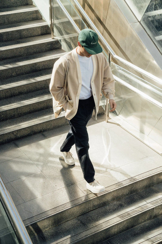 HARVARD REVERSE FLEECE CARDIGAN - MUSHROOM
